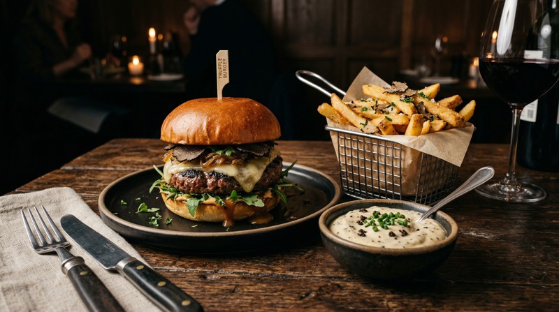Jedna z nejoblíbenějších kombinací – hranolky s lanýžovou majonézou jsou klasika moderní gastronomie.