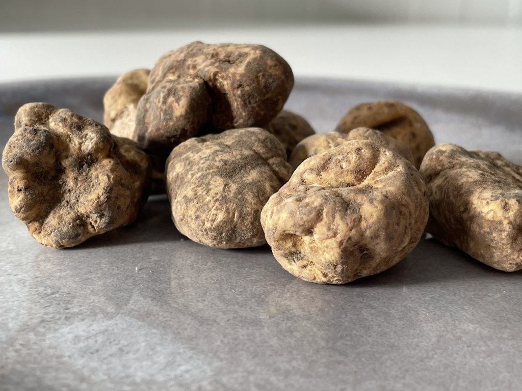 Čerstvý bílý lanýž (Tuber Magnatum Pico) z Itálie - oblasti Piemonte, právem nazývaný "diamant". Dodávaný uzavřený v termoboxu.